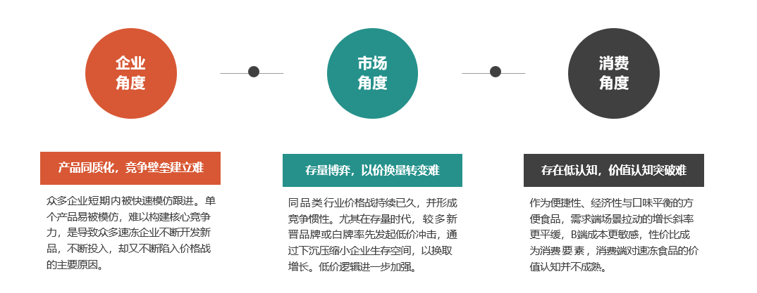 長(zhǎng)期以來(lái),速凍中式點(diǎn)心行業(yè)受低維競(jìng)爭(zhēng)思維影響,競(jìng)爭(zhēng)多停留在產(chǎn)品力與渠道力推動(dòng)階段,對(duì)消費(fèi)端的價(jià)值開(kāi)發(fā)與場(chǎng)景拓展極為有限,導(dǎo)致消費(fèi)者對(duì)品類(lèi)需求淺、關(guān)注度低,消費(fèi)評(píng)價(jià)維度單一,品牌溢價(jià)能力不足。但近年來(lái),“一升一降”的新消費(fèi)浪潮為品類(lèi)帶來(lái)了重做一遍的升級(jí)機(jī)遇。
