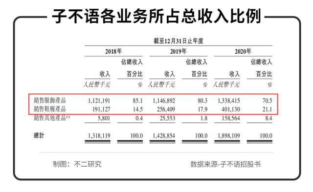 多元化欠缺的風險隱患,不僅潛藏于銷售渠道及地區(qū),子不語在業(yè)務規(guī)劃上也極其不平衡。