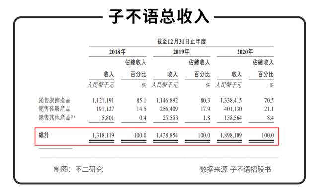 據(jù)招股書顯示,2018~2020年,子不語營業(yè)收入分別為13.18億元、14.29億元、18.98億元,年復合增速約20.00%。