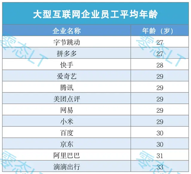 ▲互聯(lián)網(wǎng)企業(yè)平均員工年齡(圖:零態(tài)LT制)